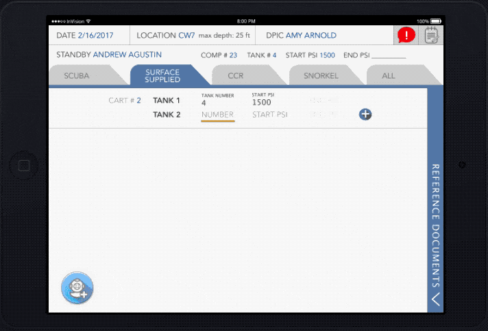 2. Tenders have a specific rhythm & user journey for data entry. so while our design needed to provide flexibility, it also needed to match the general workflow for a dive tender: