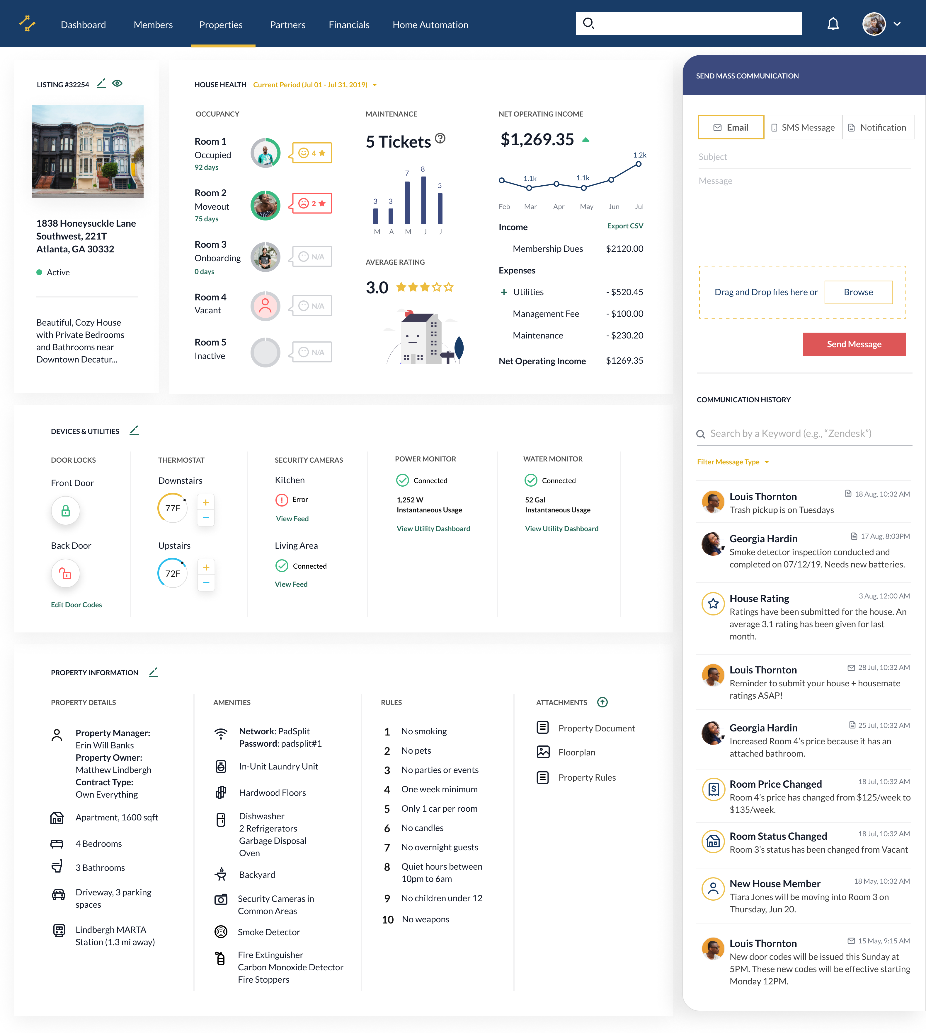 Padsplit is disrupting the affordable housing industry by creating safe, attractive, and respectable co-living environments, allowing a host to rent out their space by the room. I was tasked with redesigning the Property Dashboard, a place where admins can see an overview of a property.