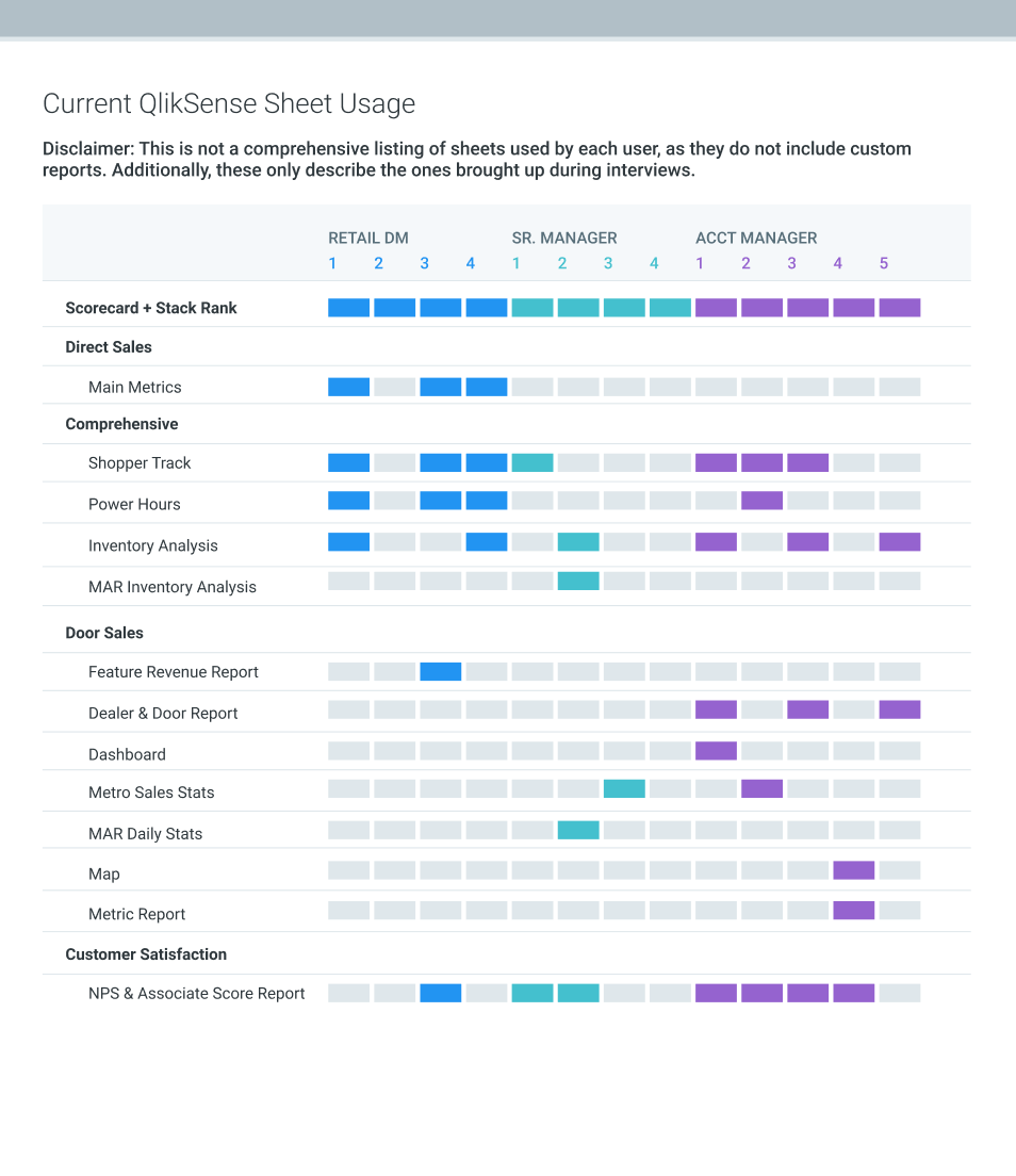 I conducted an audit to understand what were the most frequently used sheets, and whaat were the common metrics found on the most frequently used sheets.
