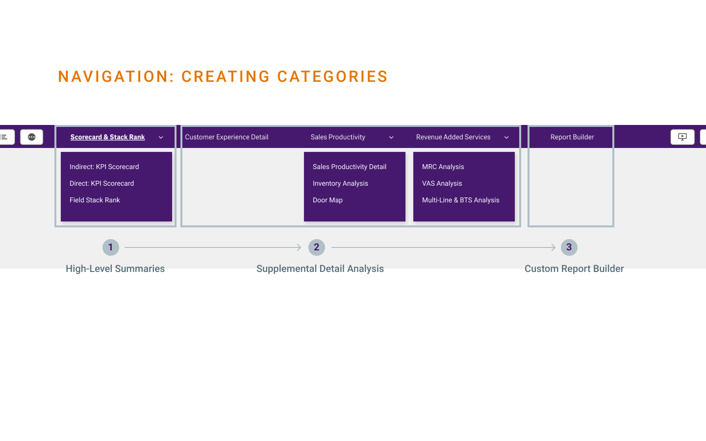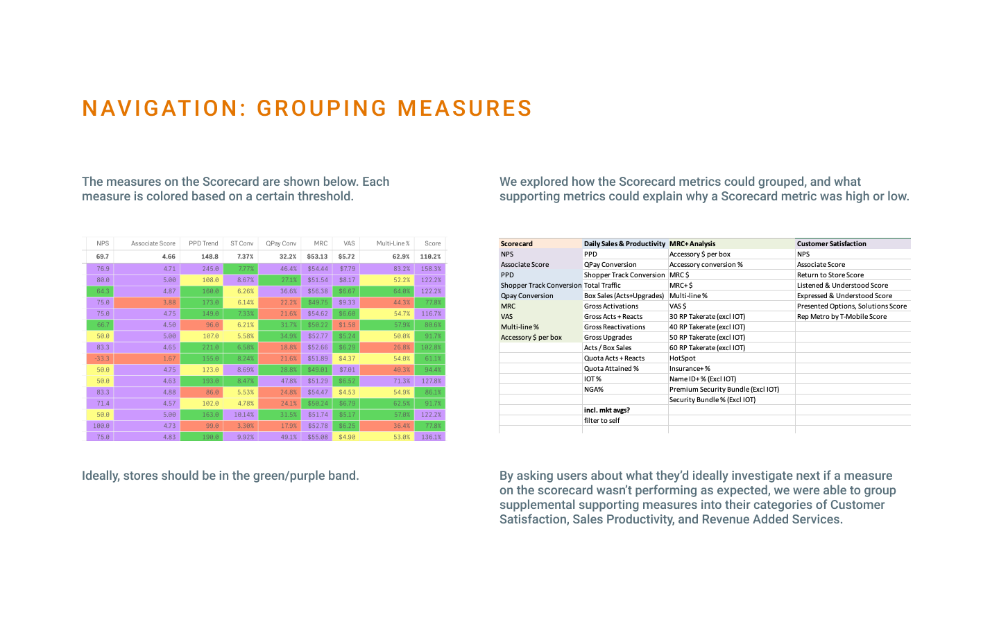 Clear navigation categories that tie back to the Scorecard, with supplemental sheets that provide detail analysis into the 9-10 key metrics