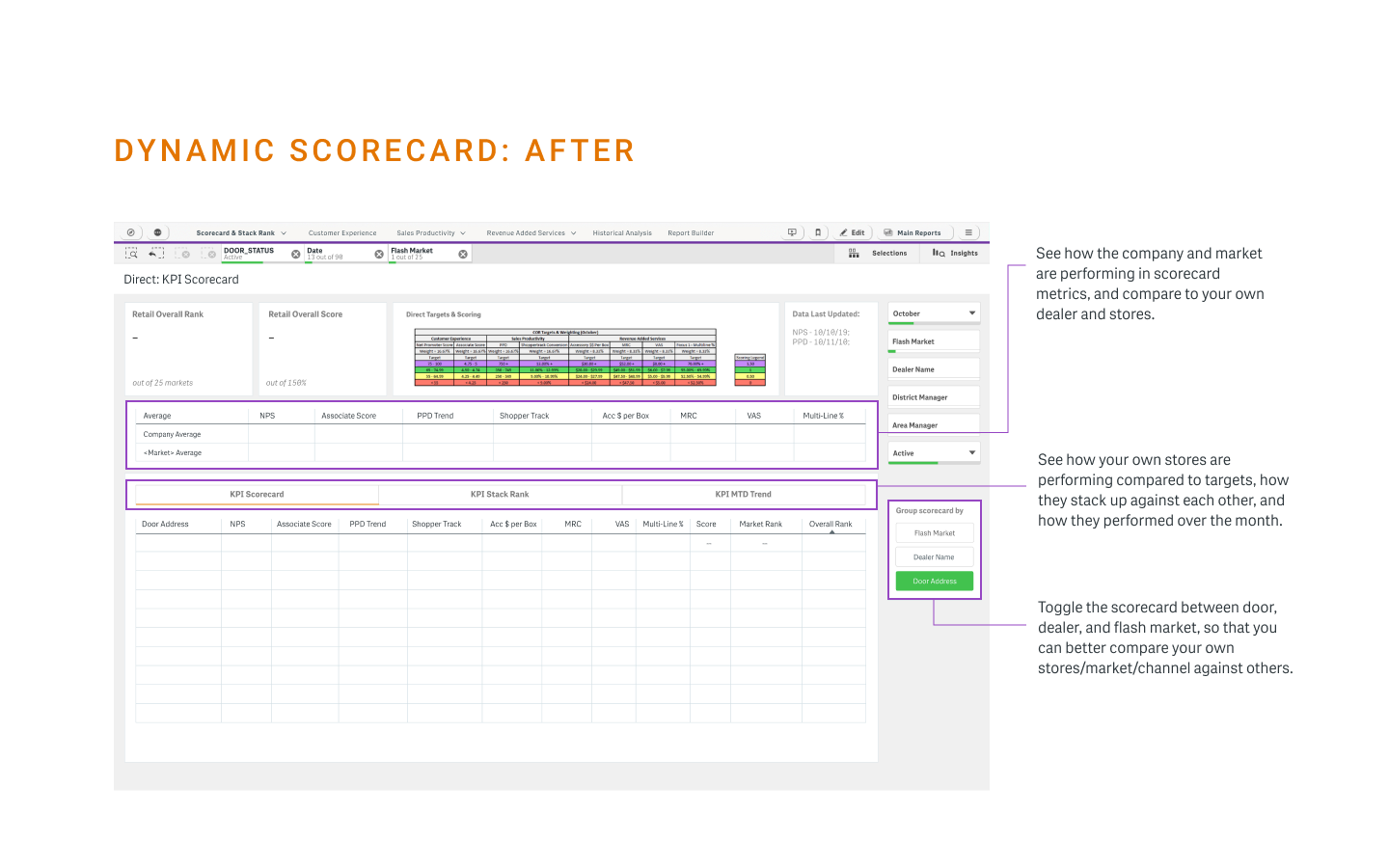 Revamped dynamic scorecard to enable peer comparison